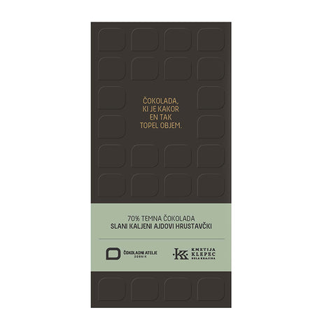 €550ni na zalogiČokolada s slanimi kaljenimi ajdovimi hrustavčki - mlečna