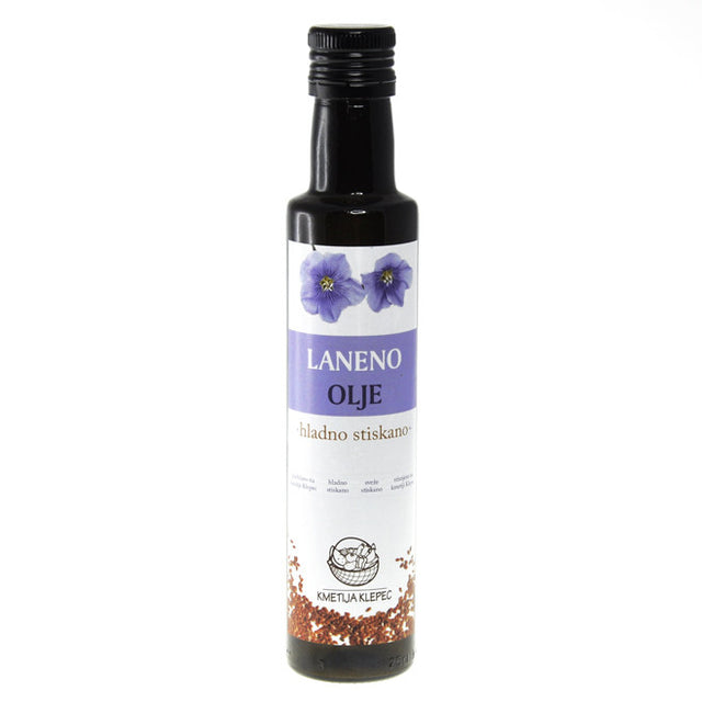 poreklo: Slovenija, olje je stisnjeno na kmetiji iz lana, ki je zrasel na kmetiji Klepec