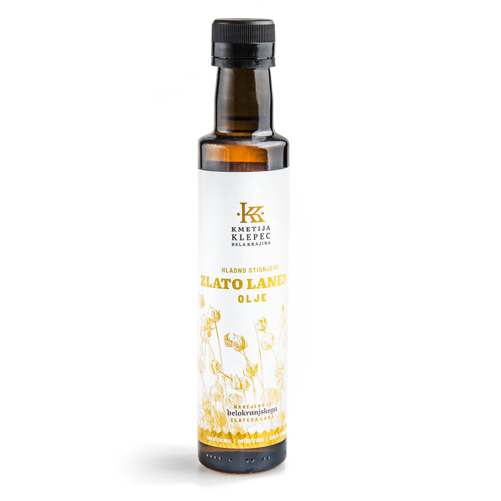 poreklo: Slovenija, olje je stisnjeno na kmetiji iz zlatega lana, ki je zrasel na kmetiji Klepec