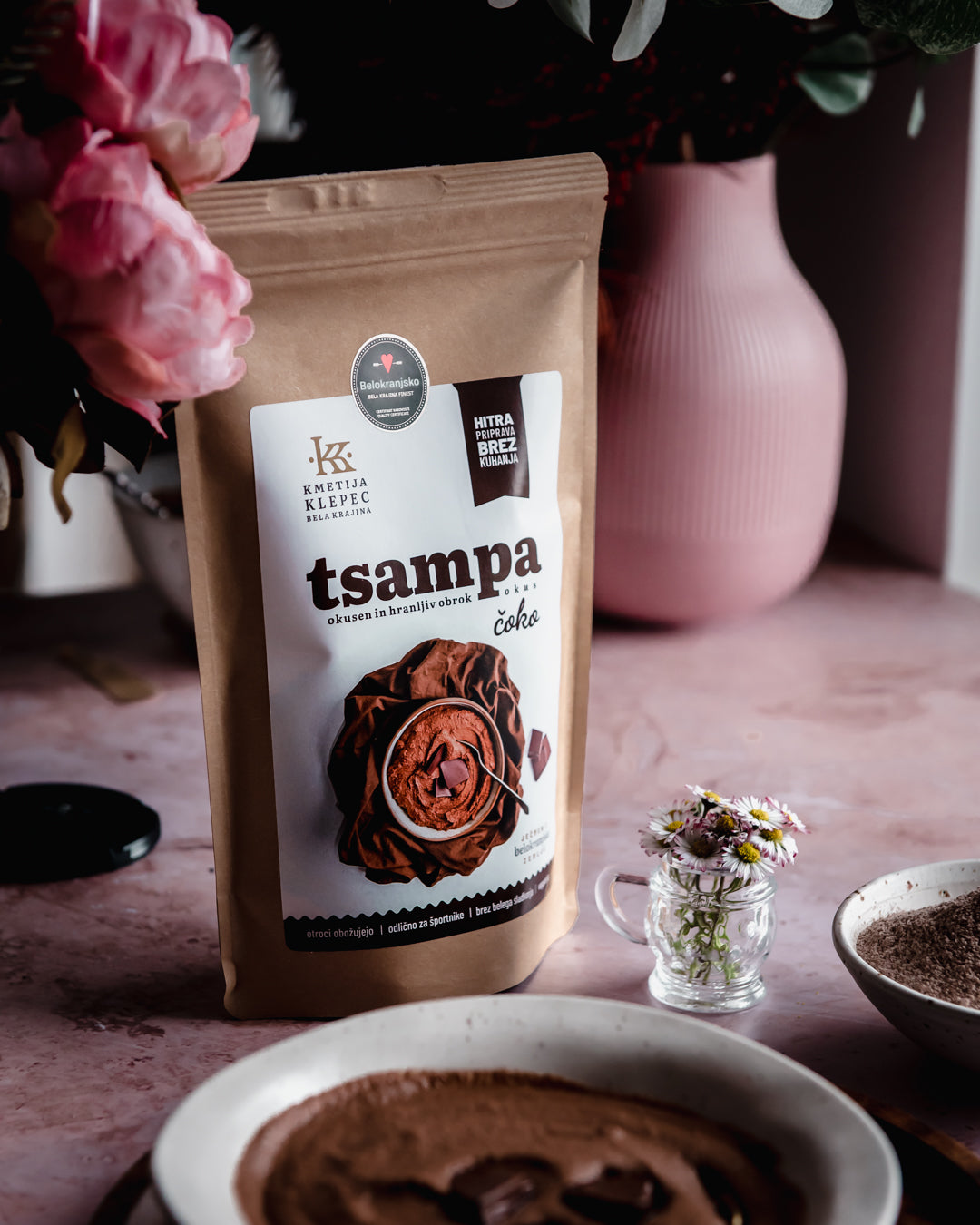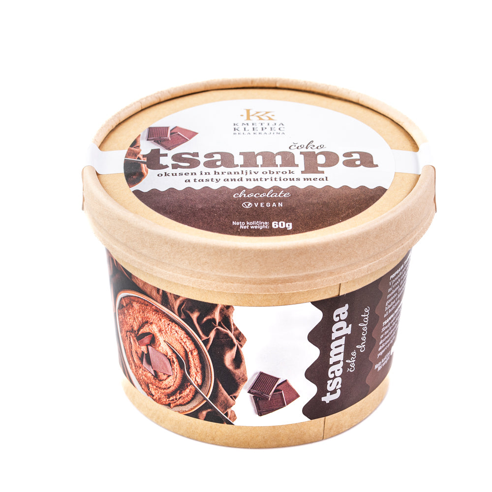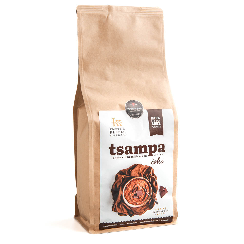Čoko tsampa je narejena iz ječmena, ki je zrasel na naših njivah ter z dodatkom kokosovega sladkorja in kakava. Je čokoladna različica priljubljene tsampe.