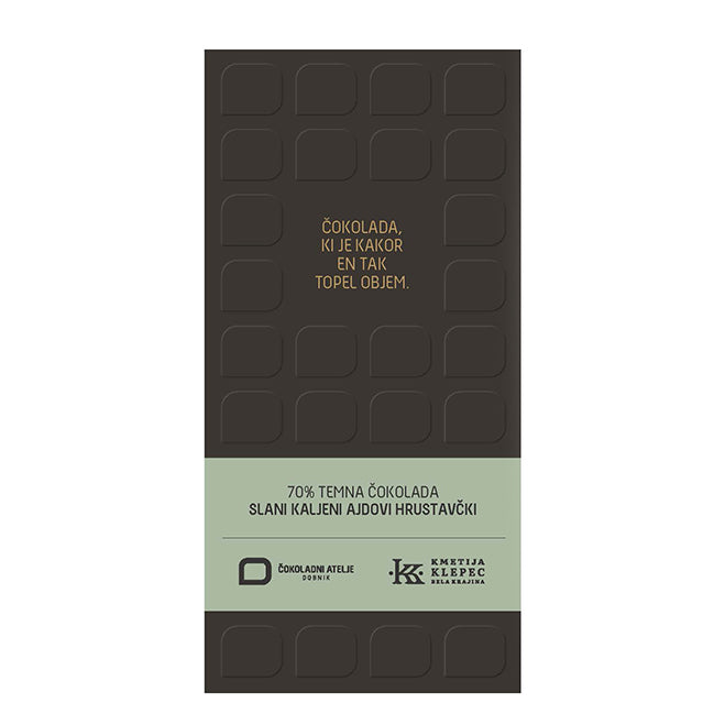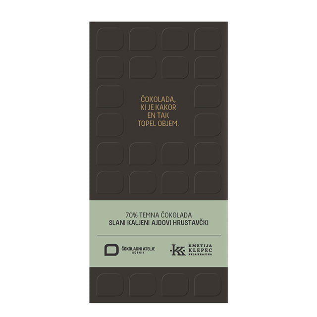 Čokolada s slanimi kaljenimi ajdovimi hrustavčki - 70% temna